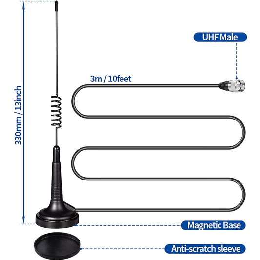 Antena Bingfu + Soporte Magnético + Cable RG58 | Banda Ciudadana / CB / 11 Metros | 33cm | PL259 | CRC-AN-46