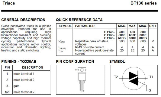 Tiristor TRIAC BTA136-600E | 600V / 4A | TO-220 | CE-TIR-02