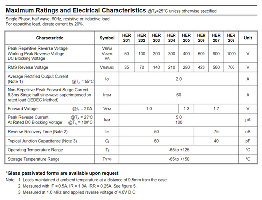 Diodo Rectificador HER207 | 5 Pack | 800V / 2A | CE-DIO-17
