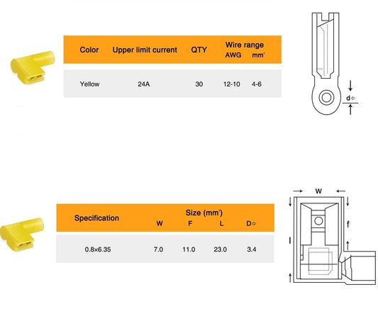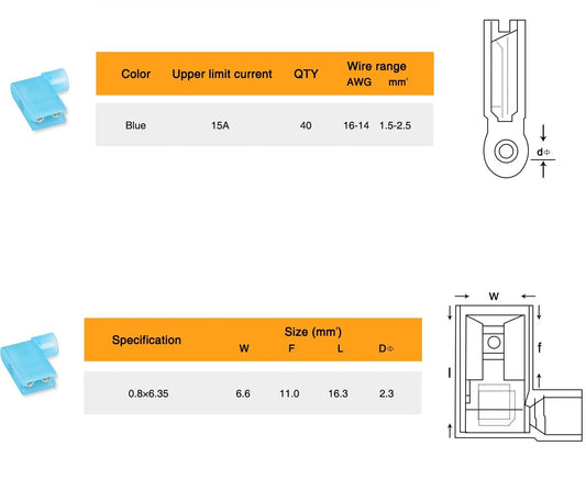 Terminal Aislado de Conexión Rápida para Cable 18-22 AWG | Accesorio para Empalme Eléctrico | 2 Pack / Macho + Hembra | CE-EMP-07