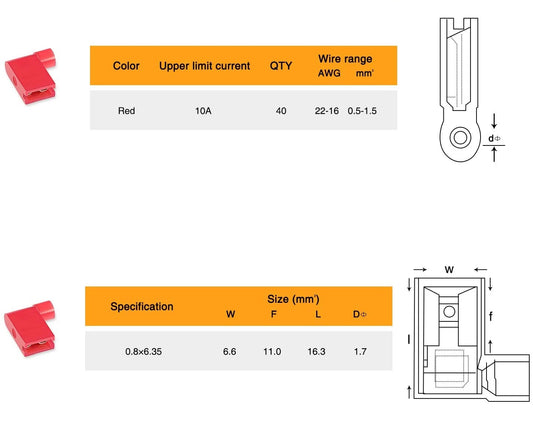 Terminal Aislado de Bandera para Cable 18-22 AWG | Accesorio para Empalme Eléctrico | CE-EMP-10