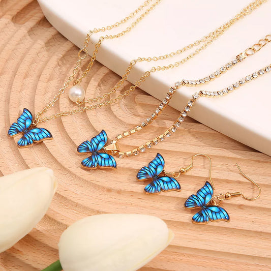 Conjunto de Joyería | Collar Doble + Pulsera + Aretes | Mariposas | CJM-CO-11