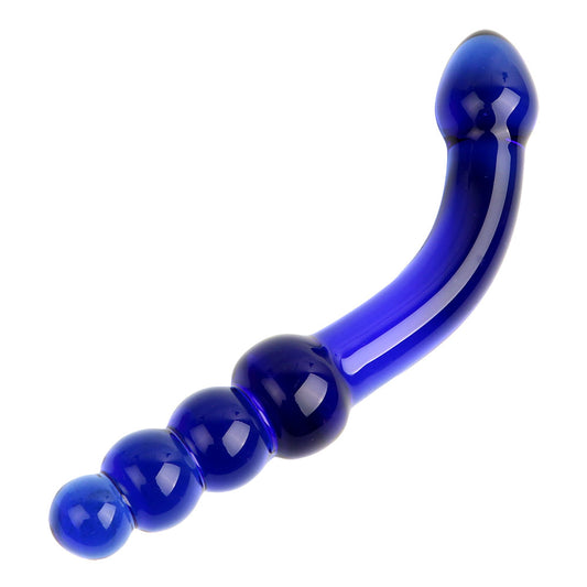 Dildo - Consolador / Bolas Anales | Doble Cabeza | Curvo | Azul | Vidrio | 20cm / 3.1cm | CJS-CO-21