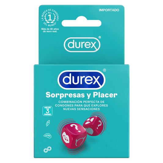 Condón / Preservativo Durex Sorpresas y Placer | 3 Pack | Lubricado | Látex Natural | CJS-CON-10