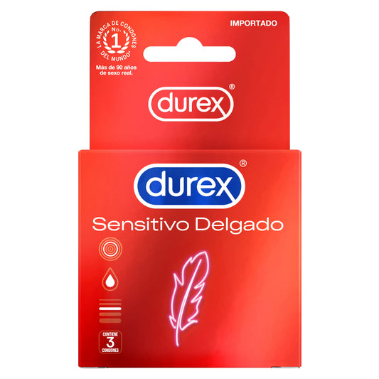 Condón / Preservativo Durex Sensitivo Delgado | 3 Pack | Lubricado | Látex Natural | CJS-CON-09