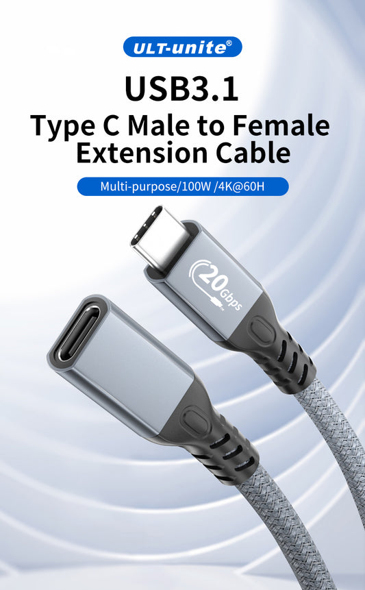Extensión USB | 1m | USB C Hembra -> USB C Macho | 20Gbps | Gris | CCE-CUS-32