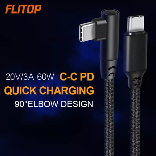 Cable USB | 1m | USB C -> USB C en Ángulo de 90 Grados / Codo | Negro | CCE-CUS-06