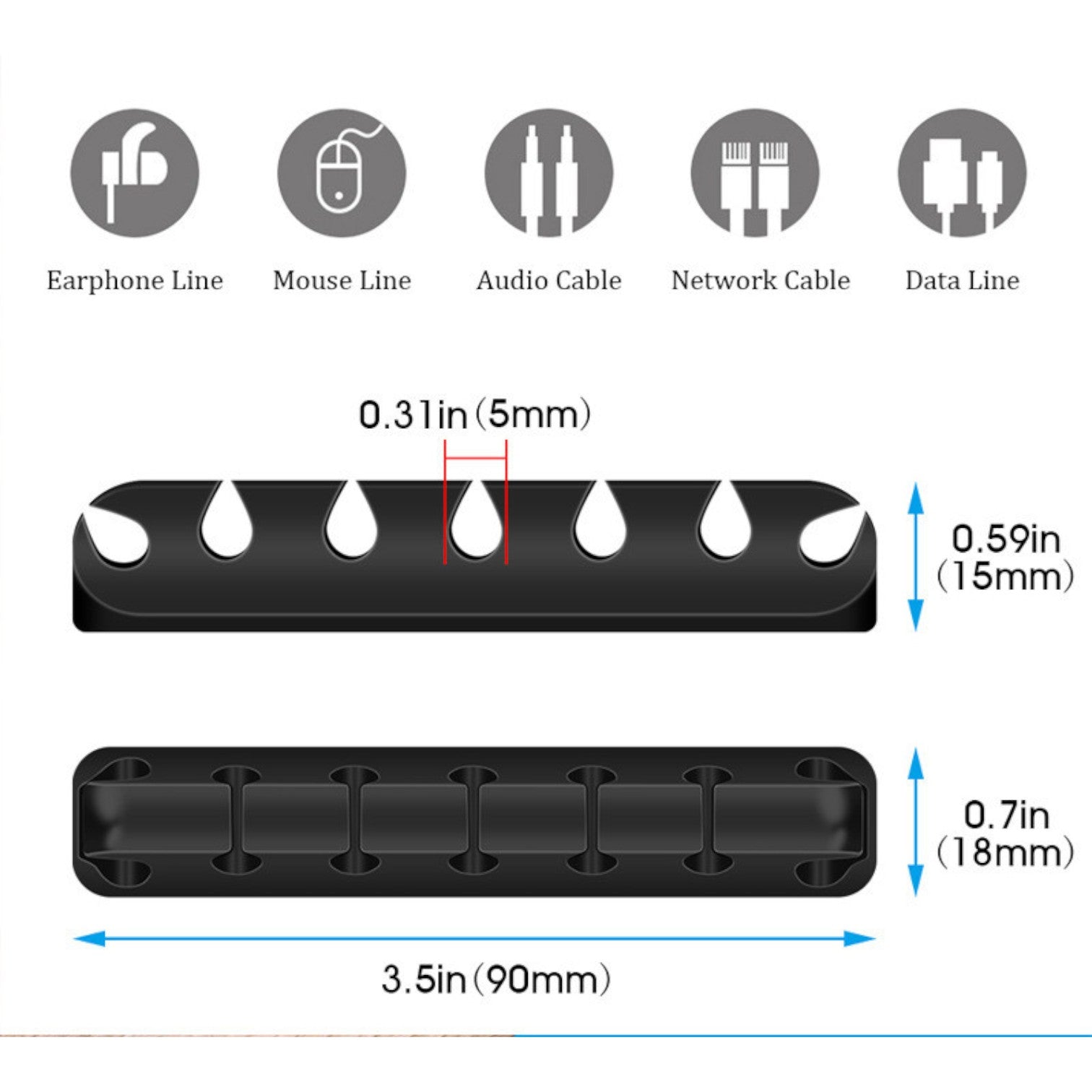 Organizador de Cables | 7 Slots | Silicona / Con Cinta Autoadhesiva | Negro / Rosado / Gris | CCE-ORG-01