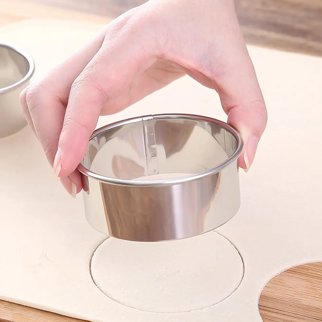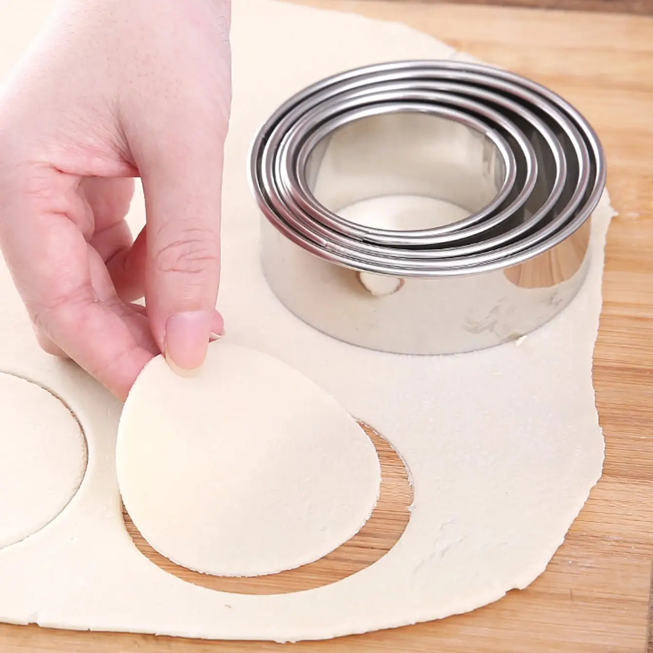 Set de 5 cortadores redondos de acero inoxidable ideales para preparar galletas, empanaditas, galletas de mantequilla, ravioles, panecillos o decoraciones de masa.