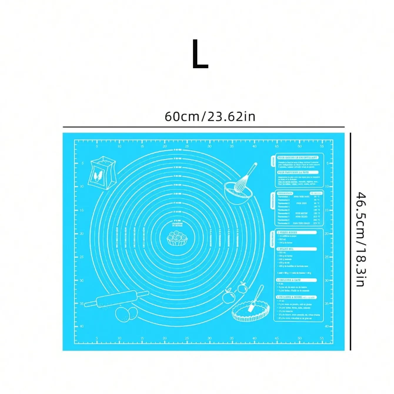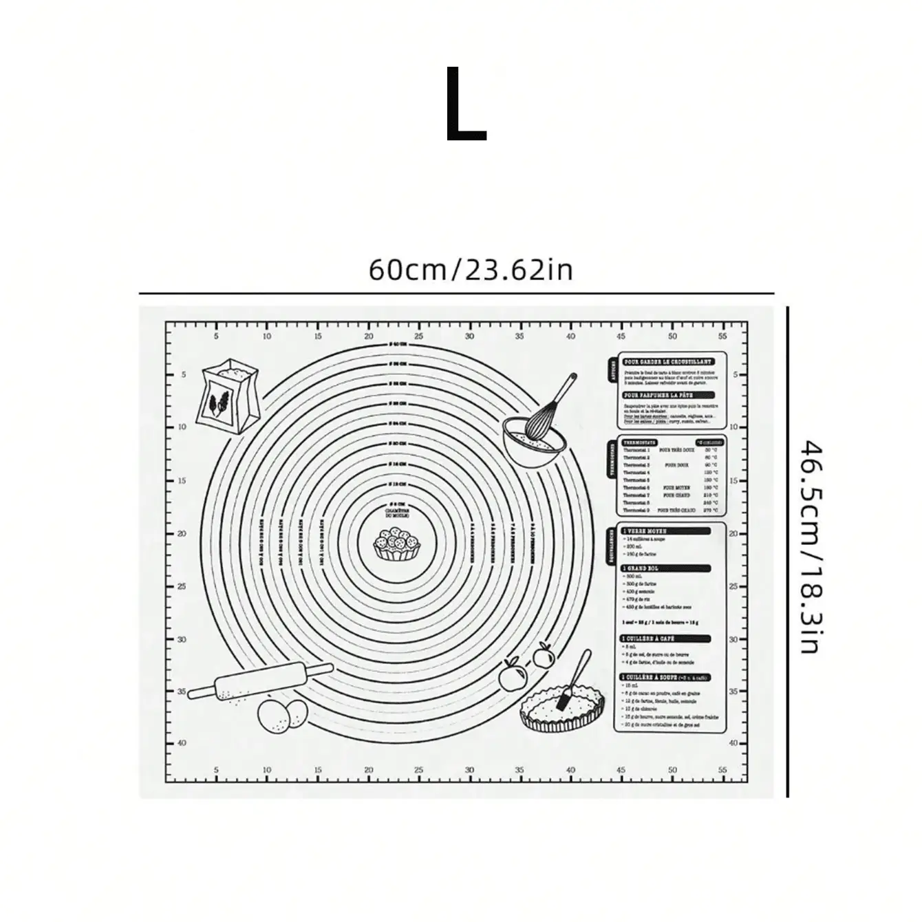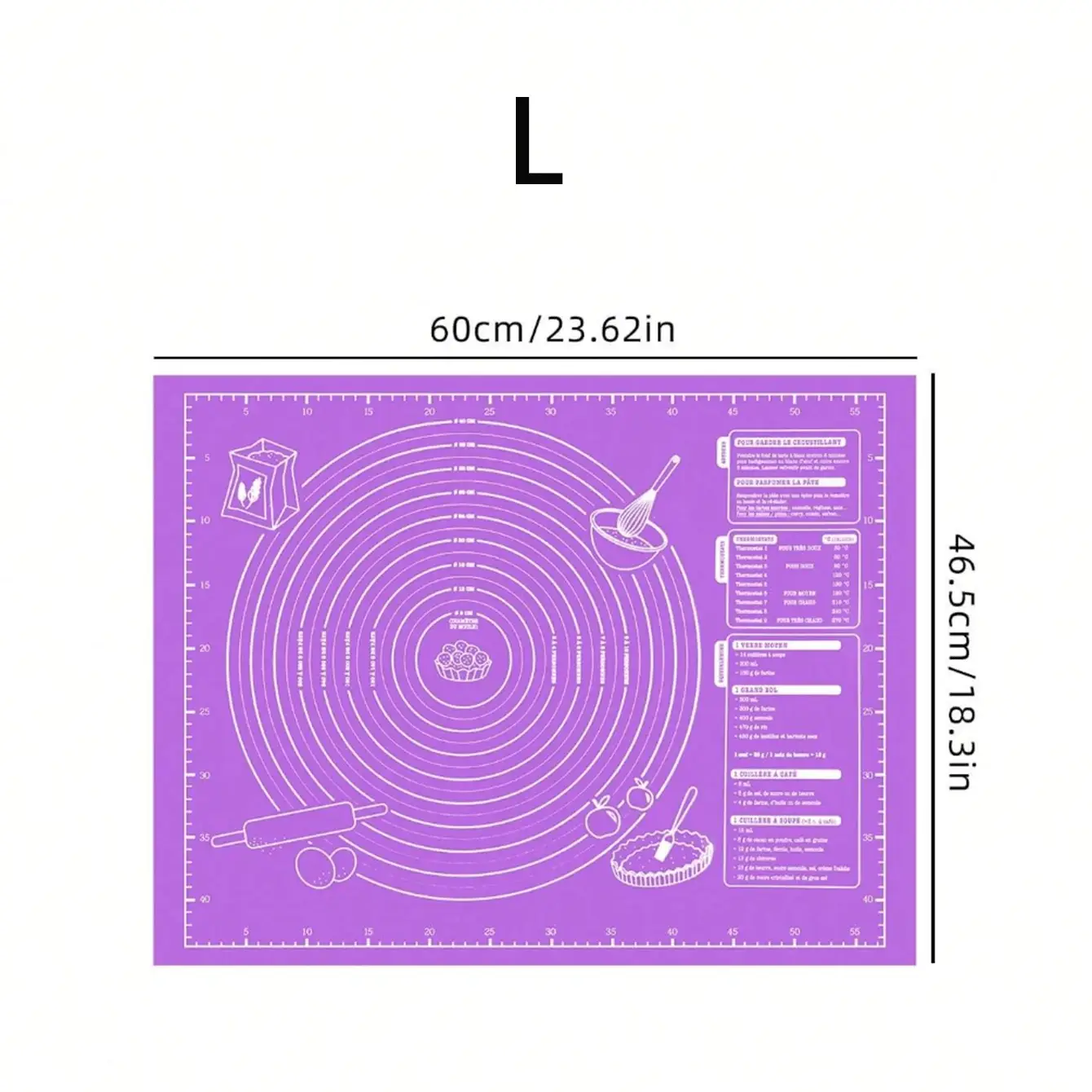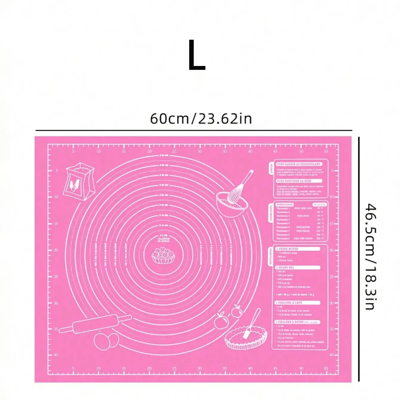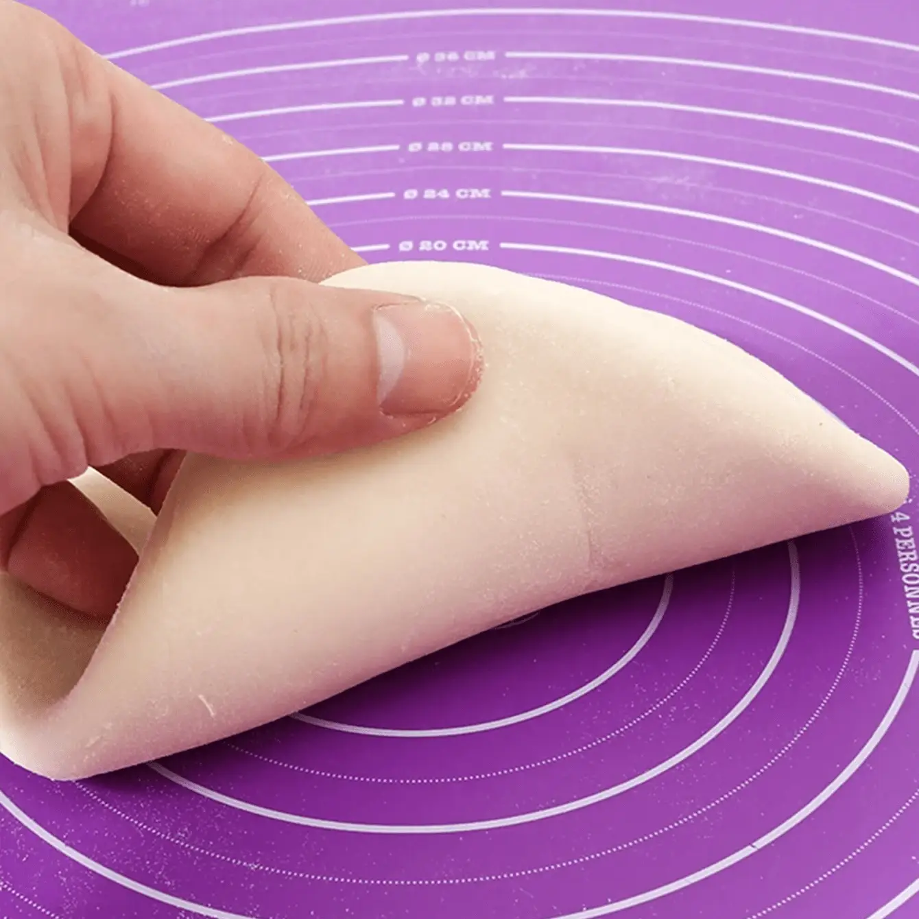 Tapete de silicona platino para amasar masa, ideal para panadería, repostería o pastelería. Su superficie antideslizante y flexible evita que la masa se pegue y facilita la limpieza después de usarlo.